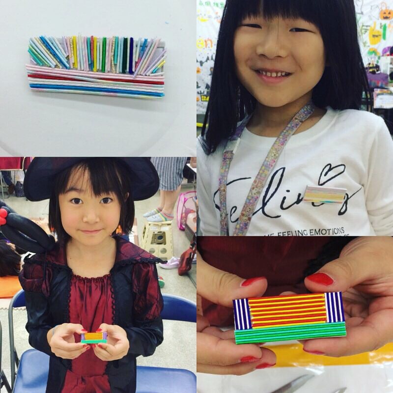 カラフルブローチはクリップタイプも選べるようにしていたので、髪留めとしてスグにつけてくださったり、ブローチを胸に着けてにこにことパパやママに見せてくれているお子さんがいらして、うれしかったです。